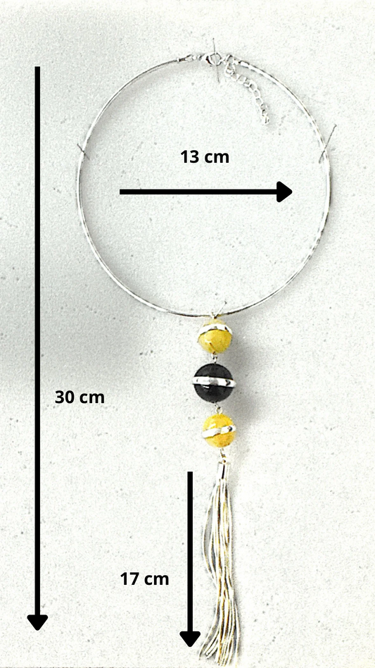 Rigid Silver Necklace with Yellow & Black Beads